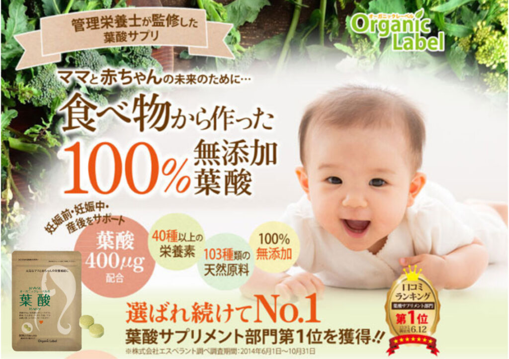 高齢出産ということもあり、色々なことに人一倍気をつけるようにもしていました。そして見つけたのがオーガニックレーベルの葉酸でした。
