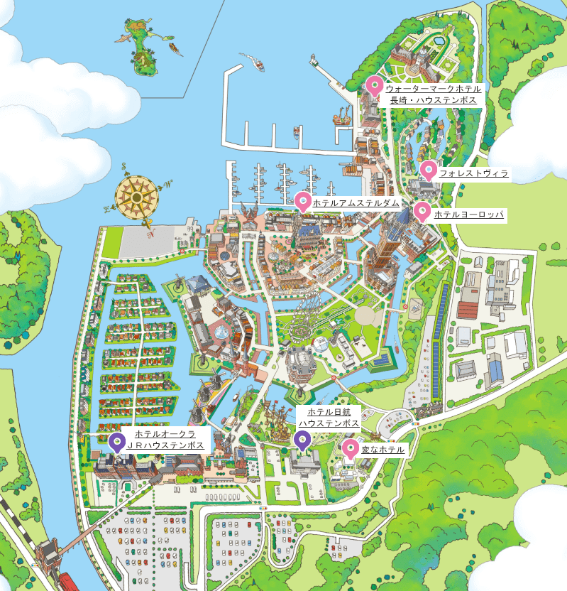 ハウステンボスの周辺には7つのオフィシャルホテルがあります。その中でも【ハウステンボス5ホテル】と呼ばれる直営ホテルにはお得な特典が満載で特におすすめです。